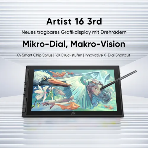 Das Artist 16 3rd behält sein ikonisches Design mit dem dualen X-Dial und den Shortcut-Tasten bei. Wenn du draußen nach Inspiration suchst, benötigst du keine Shortcut-Tastatur. Nimm es einfach in die Hand und beginne jederzeit und überall mit dem Kreieren.