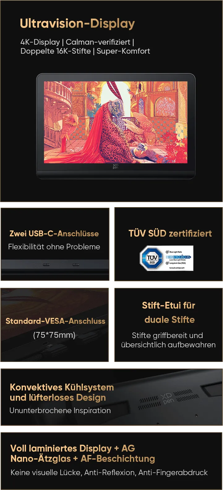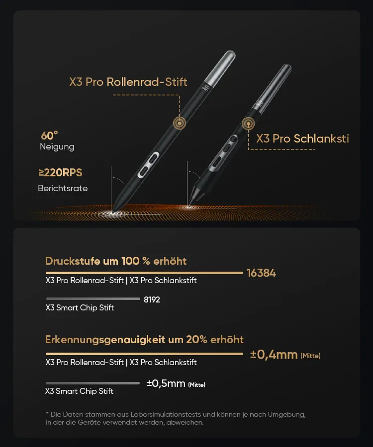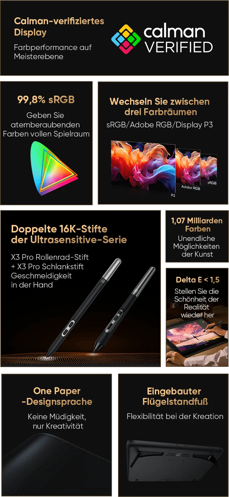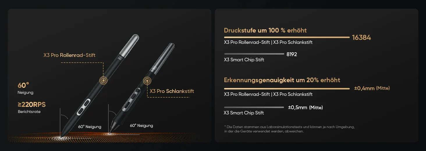 4K-Display | Calman-verifiziert | Doppelte X3 Pro Series Stifte | 16K Druckstufen