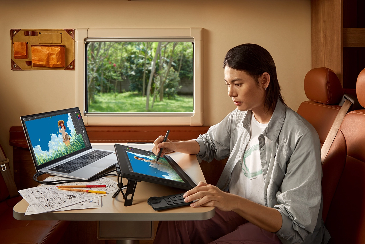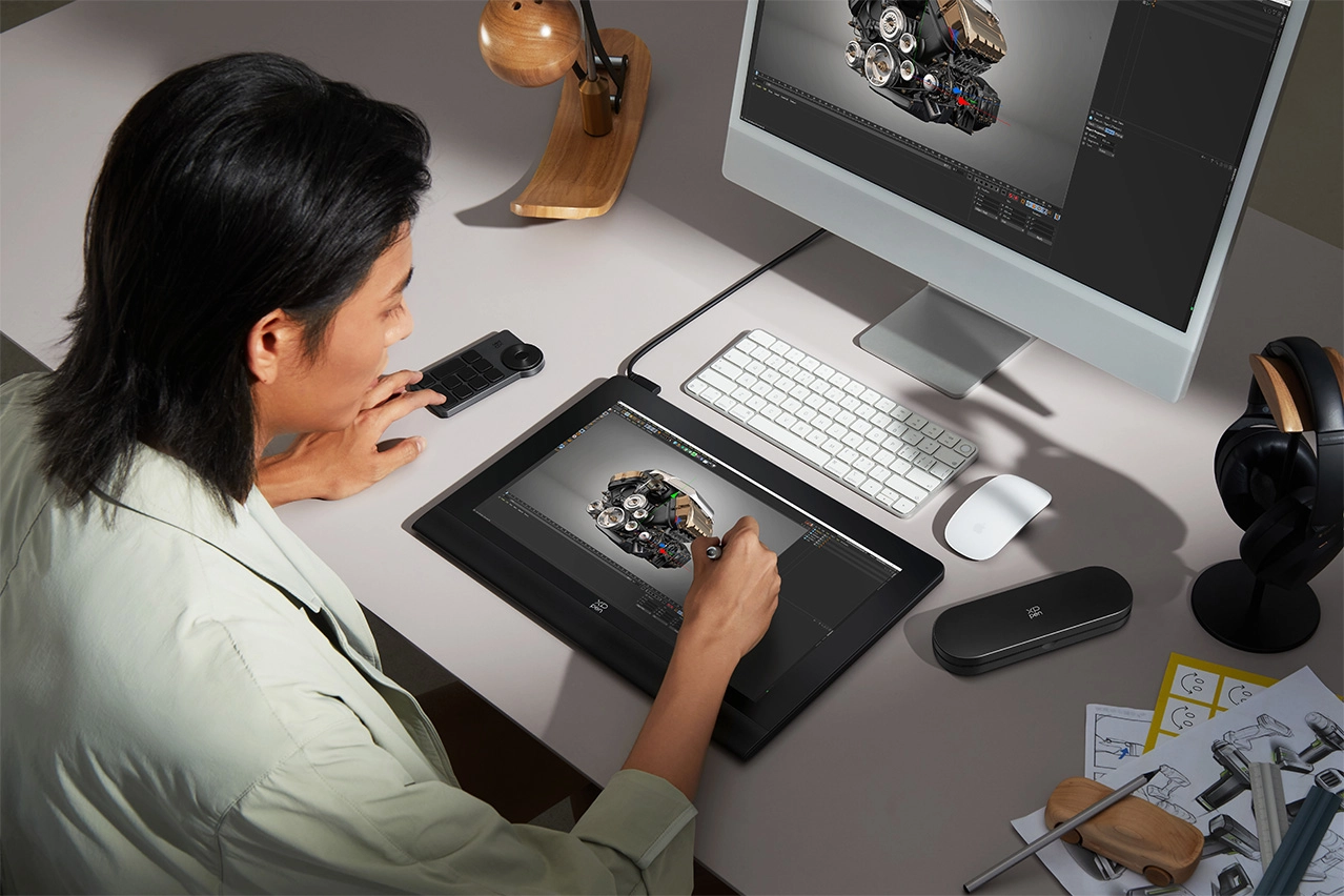 Das Artist Ultra 16 wurde dank seiner hohen Designqualität mit dem Red Dot Award Product Design 2025 ausgezeichnet. Ein robustes Aluminiumgehäuse sorgt für Stabilität und gleichzeitig für eine geringe Gesamthöhe. Das randlose Gerät verfügt über ergonomisch positionierte Tasten und eine Handballenauflage, die komfortables, präzises und effizientes Arbeiten ermöglichen. Sein schlanker Körper macht es einfach, in die Laptoptasche zu packen und in der Hand zu halten.
