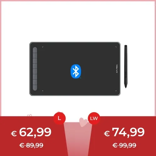 Das Deco LW Stift-Tablett ist mit einem Bluetooth v5.0-Chip ausgestattet und ermöglicht es Ihnen, ohne Kabel zu arbeiten. So können Sie Ihren kreativen Raum organisieren und Ihren XP-PEN überall dort einsetzen, wo Ihre Inspiration Sie hinführt. Das Deco LW Stift-Tablett funktioniert mehr als 10 Stunden lang mit einer Lithium-Batterie mit großer Kapazität (1000 mAh/3,7 V), die den ganzen Tag über Strom liefert.